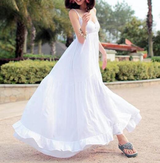 虽说都是长裙,但是长裙的长度也会各不一样。比如说有的是拖地长裙,有的是到脚踝,有的是到小腿肚。这三种长度的裙子,相比起来,拖地长裙是要第一个pass掉的。因为拖地长裙不仅显得整个人都很拖沓,还会压低你的身高,并且穿起来极其不方便。裙子长度最好是到脚踝和小腿肚。如果你腿粗的话,建议你选择到脚踝的长裙,因为脚踝是脚最细的部位,露出来就会让人感觉你全身都很瘦。如果你本来身材比较纤细,那么就选择到小腿肚的长裙,从视觉上看会更显高。