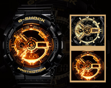 卡西欧ga110搭配独家研制的机芯,在机芯内创建了独特运算法则,这也卡西欧ga110可以在每小时的55分00秒,自动检测时针,分针,秒针的位置,如果发现错误就会自动校正。
