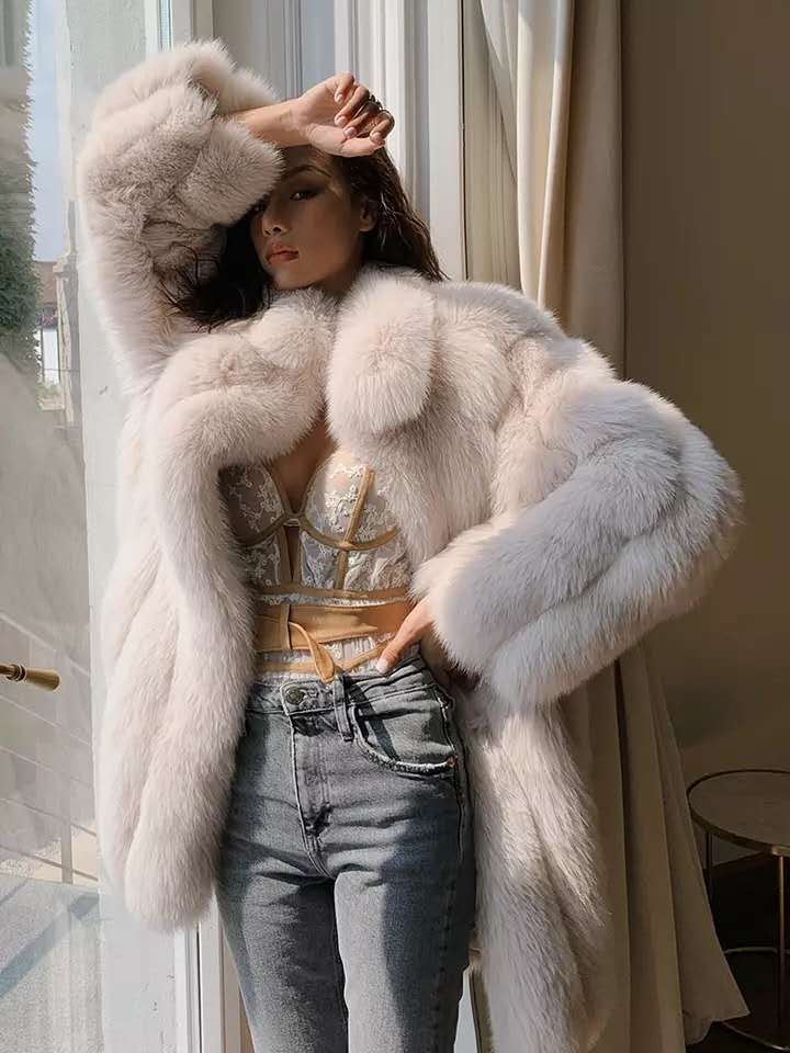 6 很多人穿裘皮时喜欢带较为夸张的装饰去衬托它的雍容华贵,但是要小心不要剐蹭到大意了。
