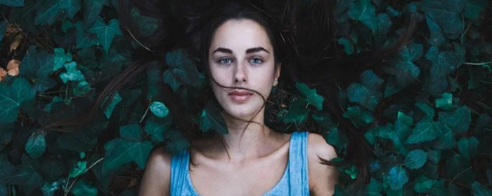 2、将左手放到右脚的脚踝上,眼睛向上望着,并伸展右手指尖,吸气,再挺直上身。