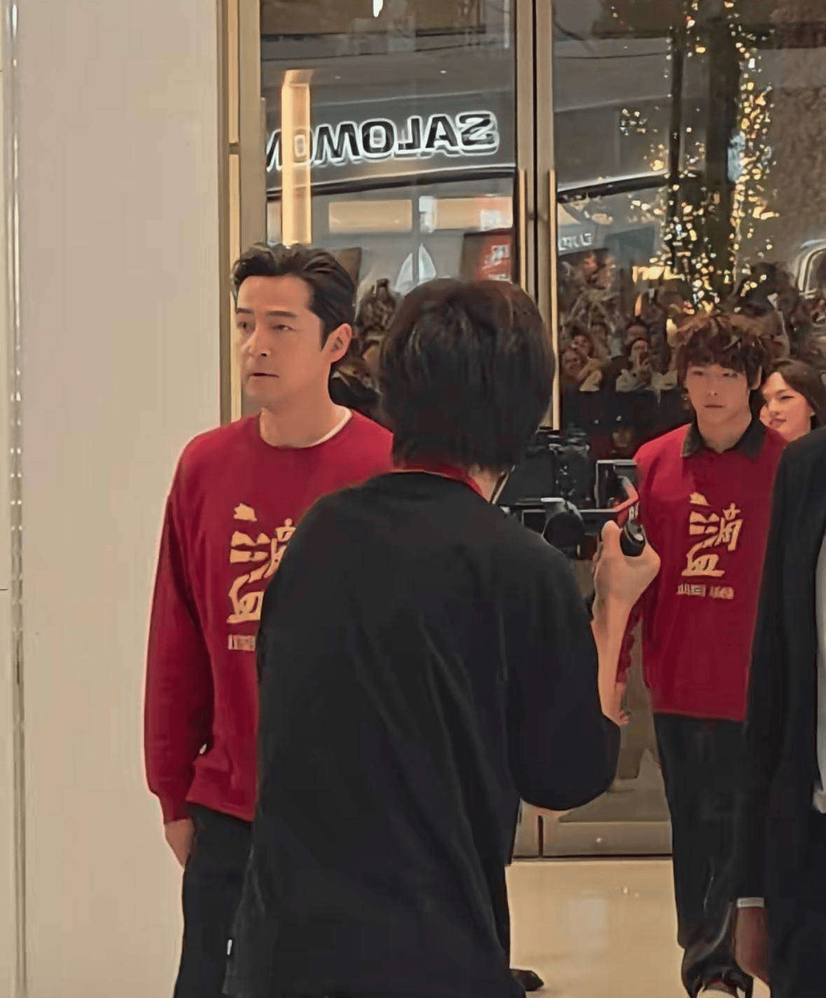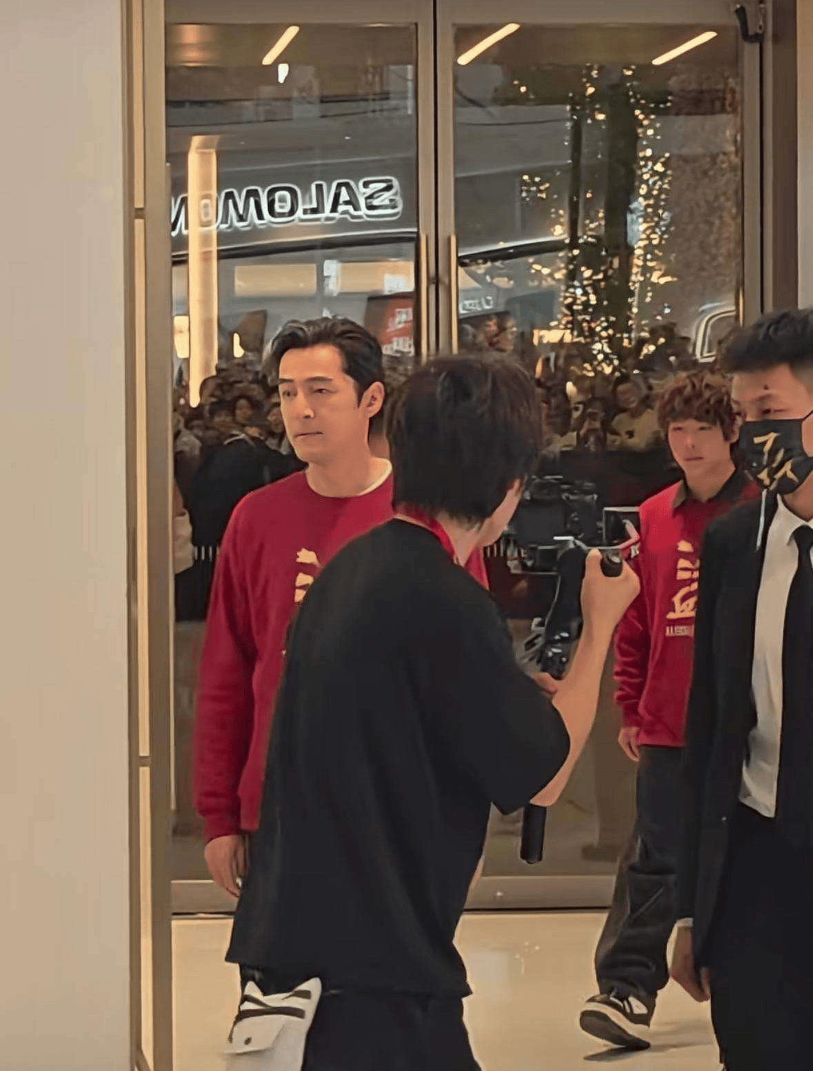 尽管胡歌已经四十岁出头,但他看起来一点也不显老。五官立体、精致,面部毫无细纹,哪怕是在没有任何滤镜和美颜的情况下,颜值依然惊艳,让人不禁感叹“帅出天际”。从大厅玻璃门的倒影中也可以看到,前来观看胡歌的粉丝和路人络绎不绝,大家拿出手机不停拍照,现场的欢呼声也不断响起。