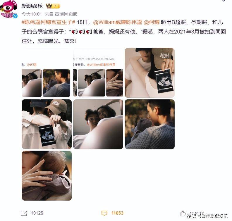10月18日,陈伟霆和何穗一起晒出B超照以及和宝宝的合影。