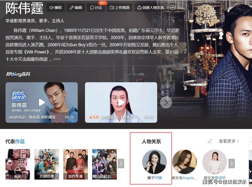再加上陈伟霆和何穗两人,百度百科上的关系也变成了夫妻。