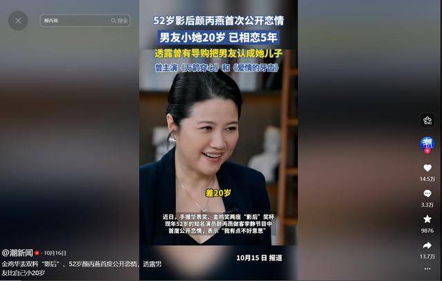 这些人选择性地忽略了颜丙燕的才华与品性,只盯着“52岁”和“小20岁”这两个标签,用最恶毒的语言攻击她的选择。