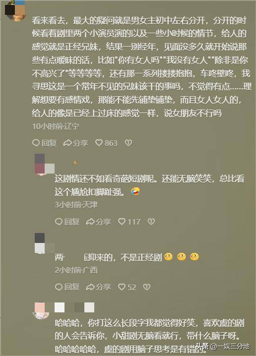 怎么分开这么久,知道没有血缘关系后,亲情就没了吗,这让虞书欣演的和多年没见的青梅竹马似的。