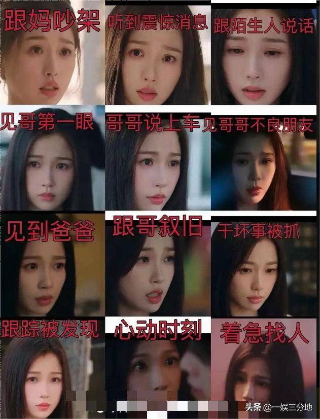 网友们看了之后还专门为此做了一个女主在遇到各种情况下表情的对比。