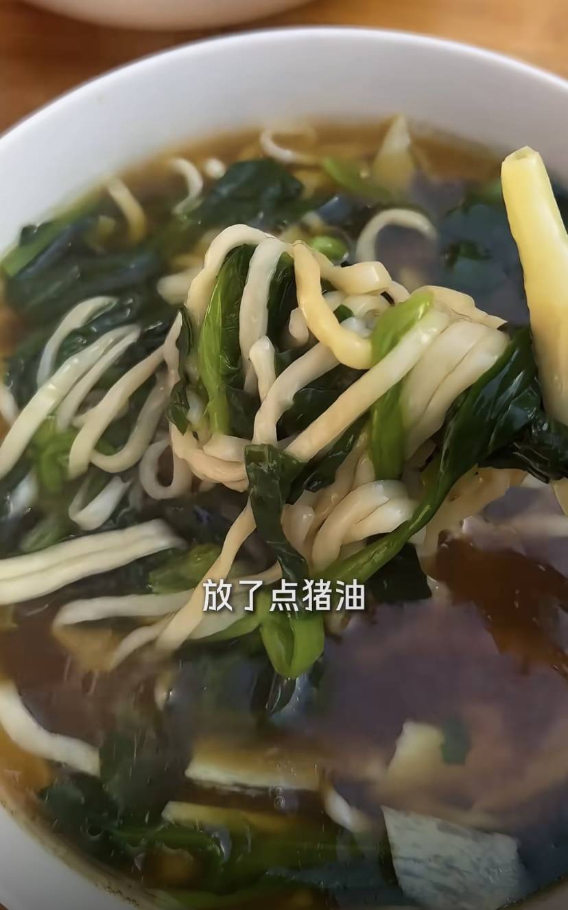 朱丹说,这碗面特别香。面很筋道、菜很新鲜,用当地话说是“还没断气”的菜,尤其是还放了一点自己熬的猪油,特别香。