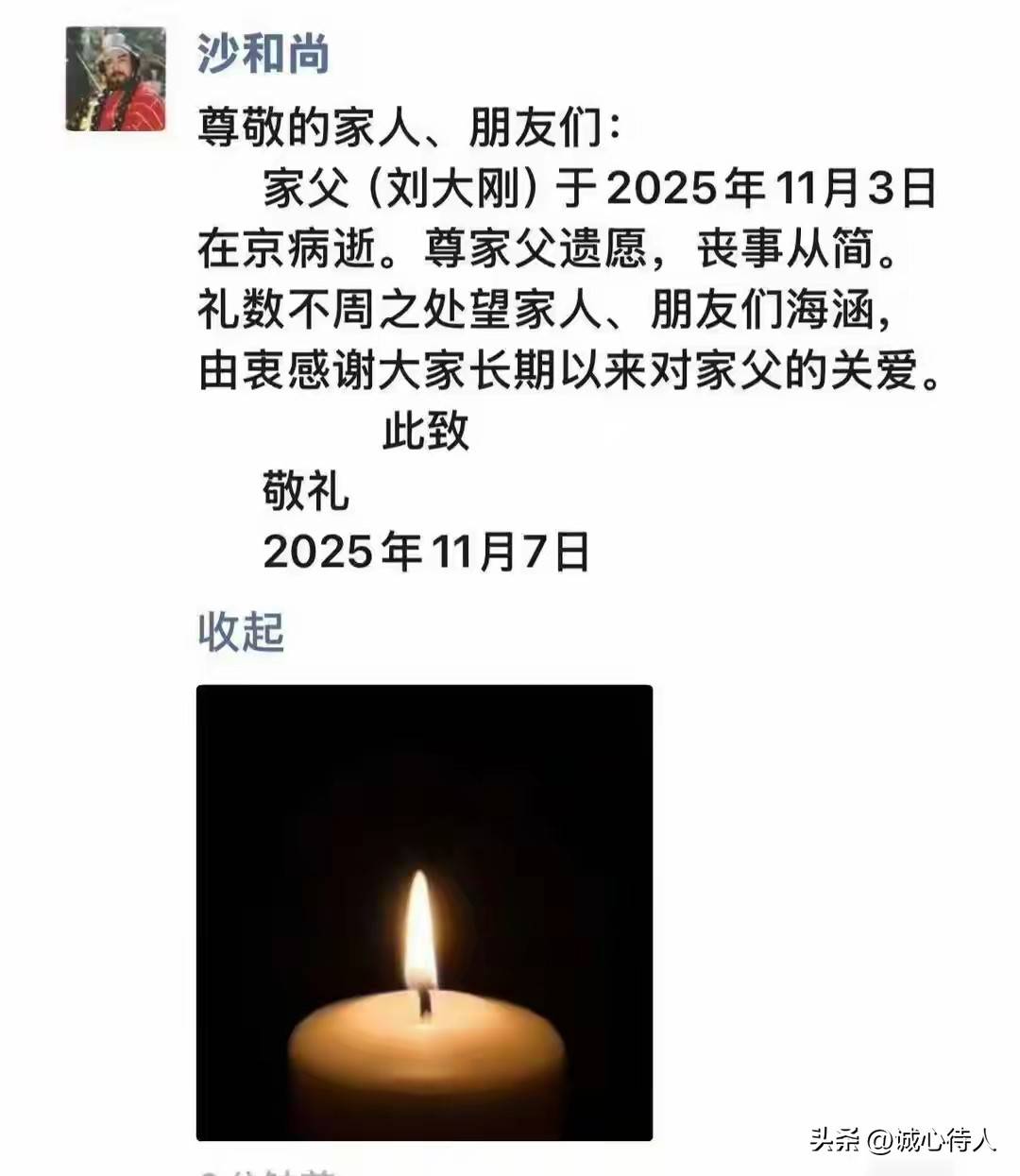 2025年11月3日,北京传来了一个让很多人心里一沉的消息。曾在《西游记》续集里扮演沙僧的刘大刚老师,因病去世了。听到这件事,不少人的第一反应是愣了一下,随后记忆便被拽回到了好多年前。那个总是扛着行李,一有事就喊“大师兄,师父被妖怪抓走了”的憨厚身影,以后真的只能存在于荧幕里了。