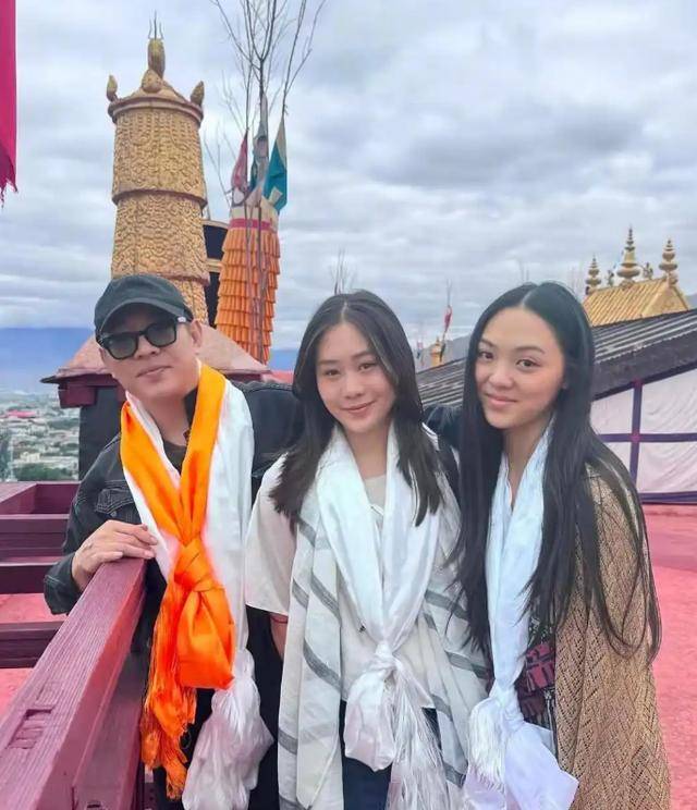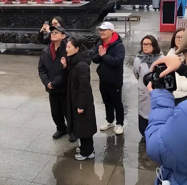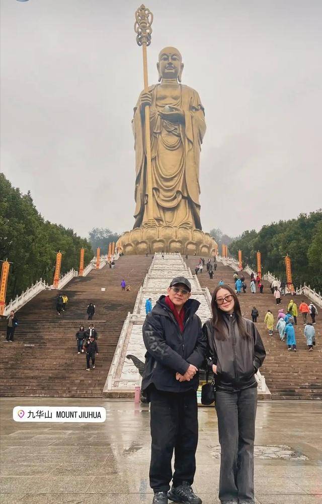 这一路上,她既是陪伴者,也是求道者。一身黑衣配黑框墨镜的她,站在父亲身旁,眉眼间像极了年轻时的利智,但在面对九华山最大佛像时露出的那抹微笑,却透着一种穿越风雨后的淡然。