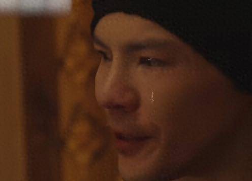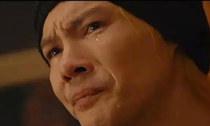 镜头前,他戴着黑色帽子,身穿连帽卫衣,泪水不断从脸颊滑落。