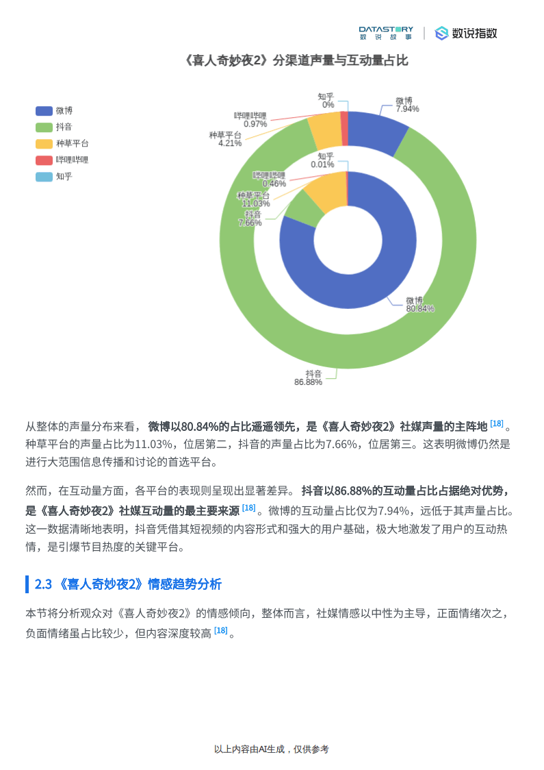今天分享的是:《喜人奇妙夜2》社媒热度、关键词及品牌联动分析