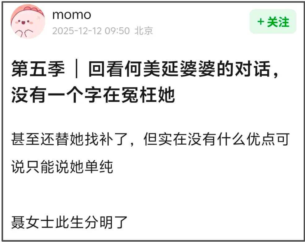 所以啊,这场风评的反转,看似是观众对一位婆婆的“平反”与同情,其实又何尝不是对所有身处类似关系里的人们的一种提醒呢?无论是选择继续携手还是各自前行,何美延和梁淞面前都摆着长长的必修课。而最让人挂心的,或许是那三个在这样氛围中成长的孩子,他们清澈的眼睛,正默默记录着一切。家庭的剧本,从来不由一个人书写,但每一个角色的真诚投入与负责担当,才是能让这部剧温暖落幕的基石。但愿每个人,都能在生活的镜头前,找到自己最踏实、最舒展的位置。