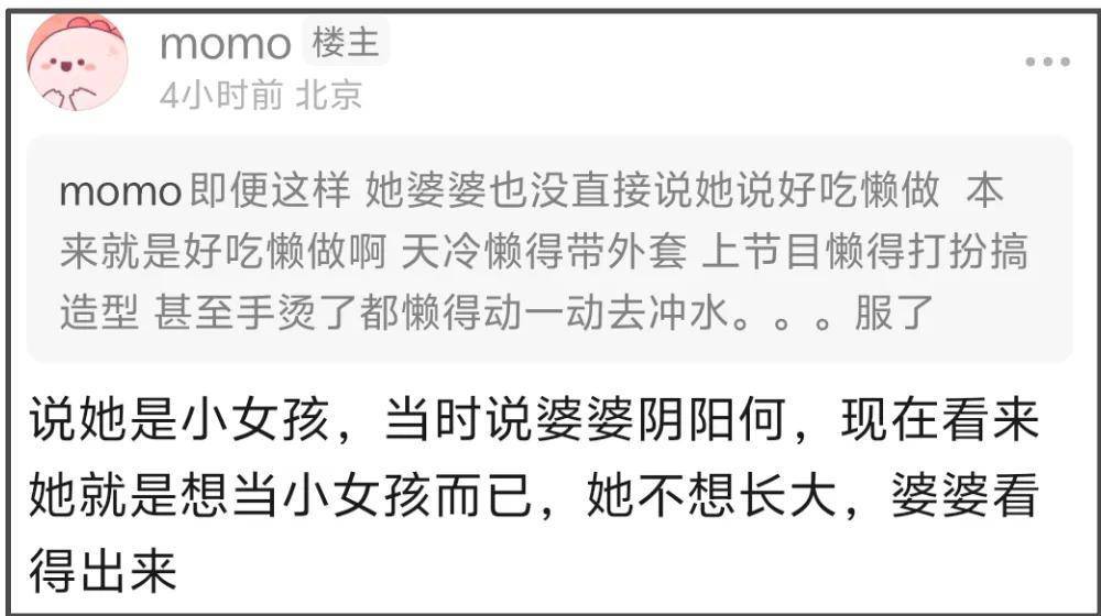 节目刚开播那会儿,婆婆的形象可算不上多讨喜。在镜头前,她曾直白地说起儿媳何美延心态像个小女孩,平时不太照顾孩子。这话一出,何美延立刻反驳,屏幕外的观众也纷纷嘀咕,觉得这婆婆是不是在“阴阳”儿媳,给自己立好妈妈、好奶奶的人设?那氛围,活脱脱像一出暗流涌动的宅斗戏开场。