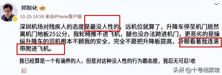 歌手郑智化,大家都熟悉,唱过很多有力量的歌,他的人生经历也让他对很多事情有更敏锐的感受。前几天,他在网上发了一段话,说在深圳机场登机时遇到了麻烦,用了“连滚带爬”这样的词,还指机场“没人性”。