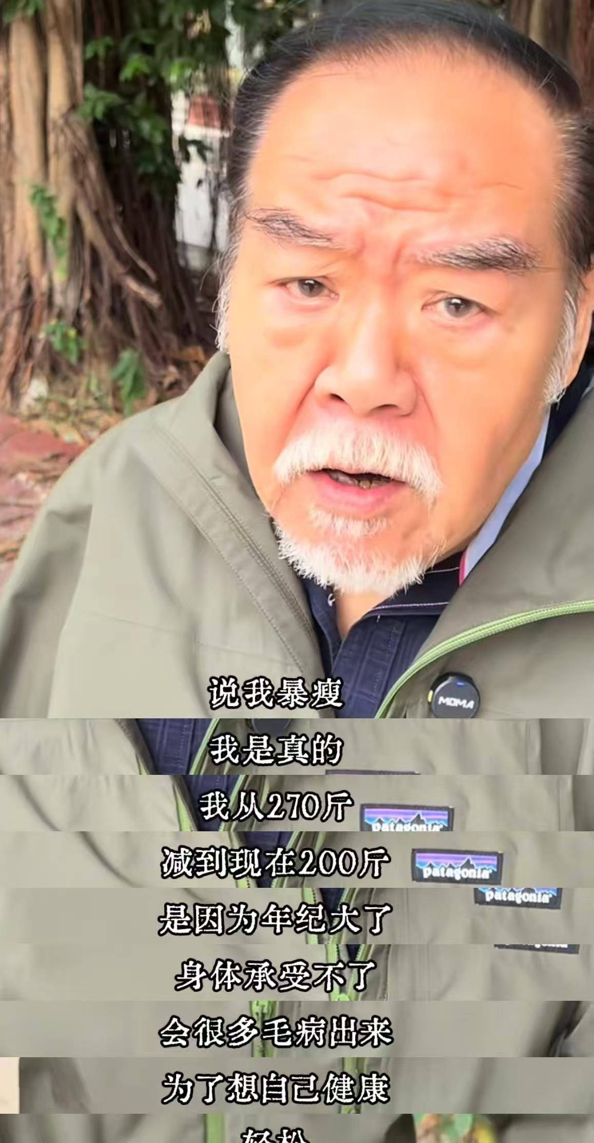 与此同时,他也分享了一个喜讯:自己成功从270斤减重70斤,目前体重维持在200斤。这次暴瘦并非因病所致,而是74岁的他,考虑到身体已难以承受过往的庞大负荷,为了健康长寿,主动选择了减肥。