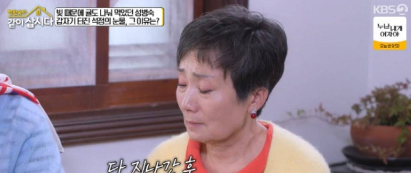 那段日子里,她不敢回家、不敢开机、不敢看账单,连一颗橘子都舍不得吃。成炳淑在节目中回忆:“有一次熟人在路上给我一个橘子,我带回去给父母,自己一口都没尝。”