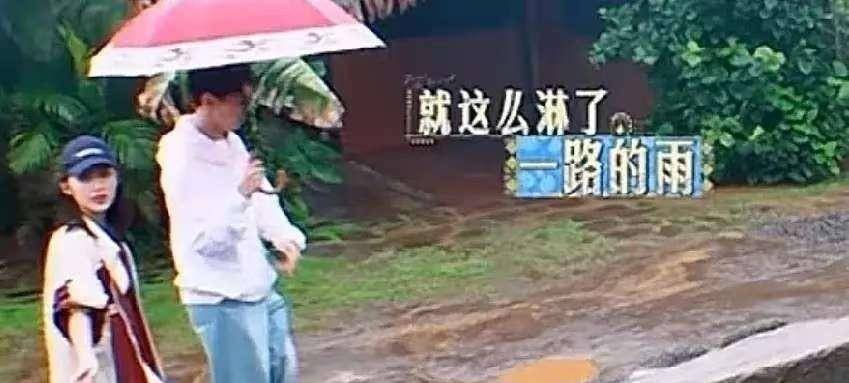 不知情者,或许还以为他默默付出了许多。节目中遇雨,与人同撑一伞,他却将伞完全遮在自己头上,身旁的邓恩熙后背湿透。旁观的哥哥姐姐们看不过去出言调侃,他也毫不在意。