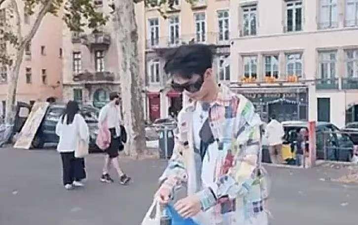 集体逛街时,田嘉瑞请他帮忙拿一下东西,他转身就将物品挂在了路边栏杆上。