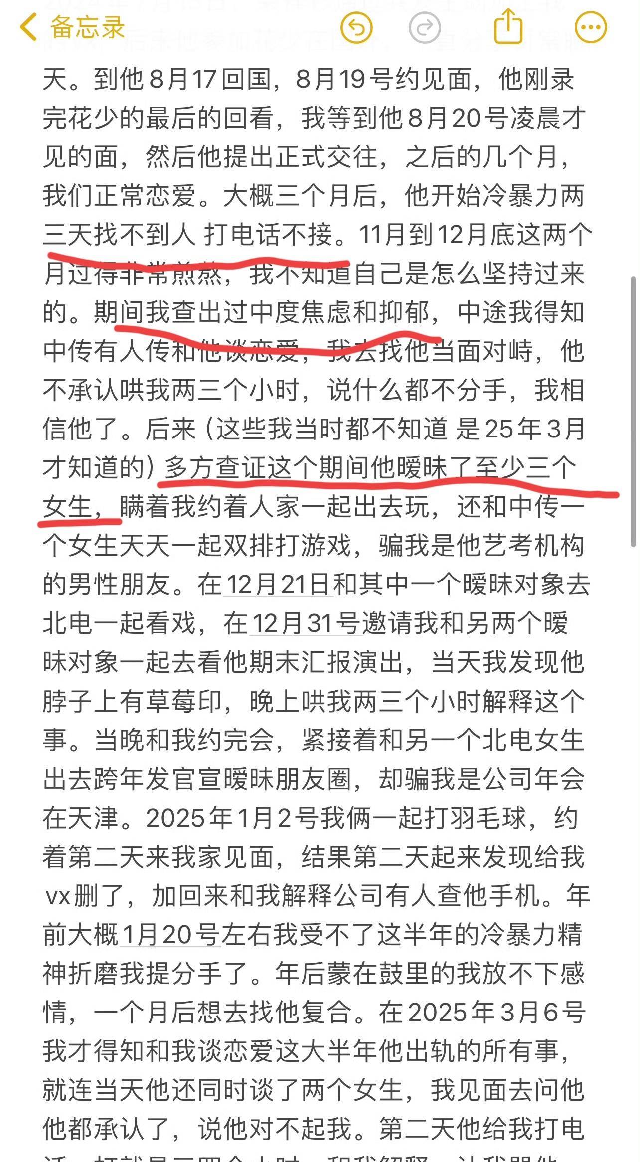 然而,据女孩描述,她最初以为的真挚深情,很快便露出了另一面。她事后发现,在那段关系存续期间,荣梓杉竟同时与至少三位女生保持着拉扯与暧昧。这份“热情”仅仅持续了三个月,他便开始对女孩冷淡疏离,甚至不接电话。