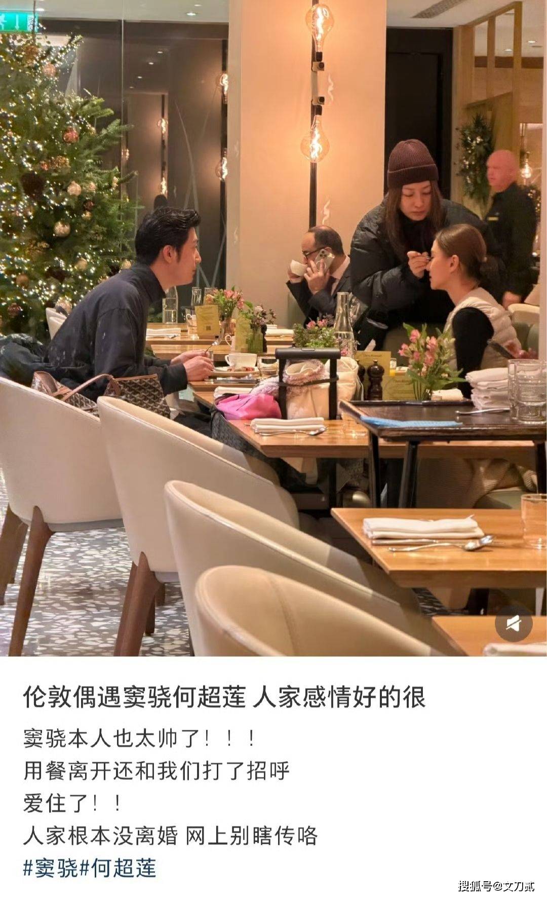 在拍摄的剧集杀青,工作告一段落之后,窦骁也有更多的时间陪伴妻子。所以,此前有很多网友在不同的地方偶遇了前去度假的窦骁和何超莲。比如,有网友在澳大利亚偶遇了二人,并配文称“明明人家感情甚好”。之后,还有网友在英国伦敦偶遇了在餐厅吃饭的窦骁和何超莲,也直言“人家感情好的很,根本没离婚,网上别瞎传咯”。