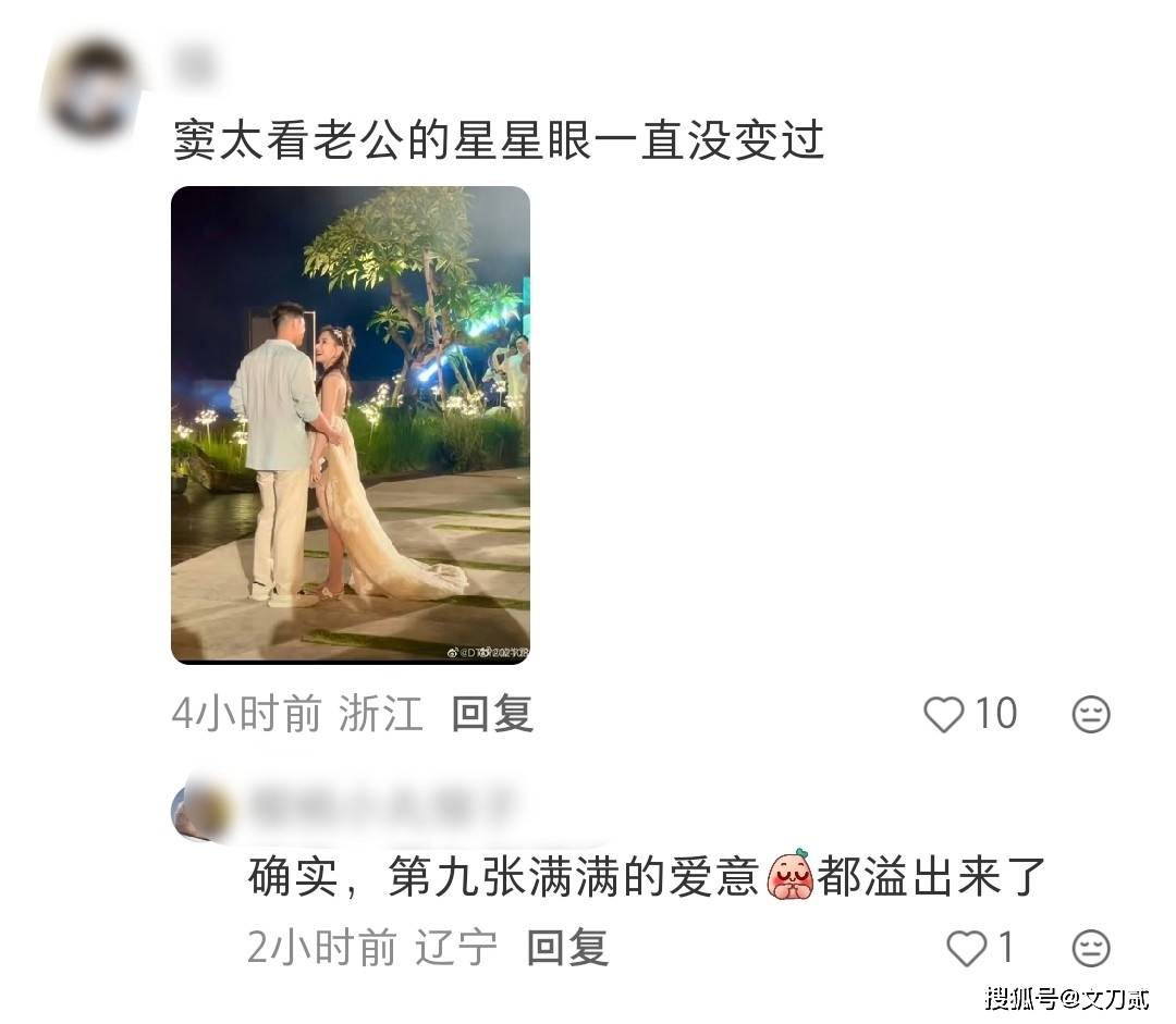 何超莲对窦骁的“星星眼”也不是第一次出现了,在他们的婚礼上,有一张照片很出圈。照片中,窦骁侧身面对着镜头,他的手轻轻地搂着何超莲的腰。站在窦骁身边的何超莲满脸笑意,眼神亮晶晶地看着自己的新婚丈夫。原来,从那时候到现在,窦太看老公的星星眼一直没变过。