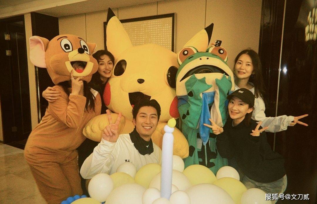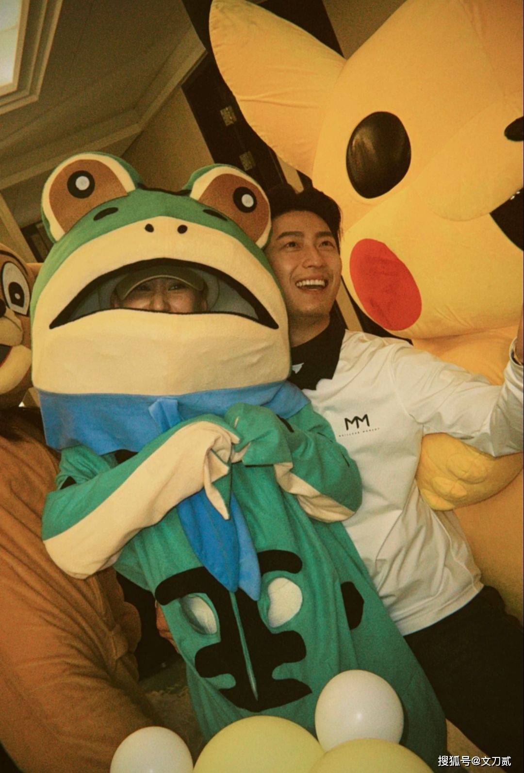 从汤畅晒出的庆生照中可以看到,朋友们为了给窦骁一个惊喜而穿上了各种各样的玩偶服,比如皮卡丘。何超莲也参与其中,穿上了大眼蛙的玩偶服,大家能够透过玩偶服看到她白色的帽檐和弯弯的眼睛,给人感觉滑稽又可爱。主角窦骁被大家包围着,身穿白色上衣的他对着镜头开心比耶。