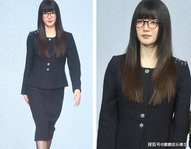 可这次活动,从造型开始就有点打破惯例。厚厚的刘海,配上黑框眼镜,再加一身黑色西装,整体风格显得格外严肃,甚至被一些网友调侃说,不像女明星出场,倒有点像开班授课的讲师。也许是因为发型遮挡,她的五官在镜头前不如以往清晰。精修照片里还好,但现场的生图确实能看出,她比之前丰腴了一些。