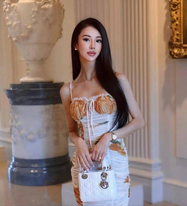 这并非仅仅因为她手捧白玫瑰时流露出的那种名媛特有的从容,更在于那套显然是经过精心特别定制的婚纱。