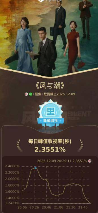 如果不出意外,《狙击蝴蝶》想要登顶非常困难,因为自带热度的《长安二十四计》来势非常猛,还有一部黑马剧,正在低调地发力,这部剧就是《风与潮》。