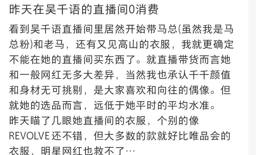 而且她都是阔太了,直播带货仍然没什么逼格,选品选了很多价格贵但品质一般的,很多网友都怀疑自己是被她的贵妇人设蒙蔽了,她的直播实则就是冲着圈钱去的。