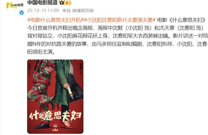 小沈阳老婆沈春阳执导电影《什么意思夫妇》啦!
