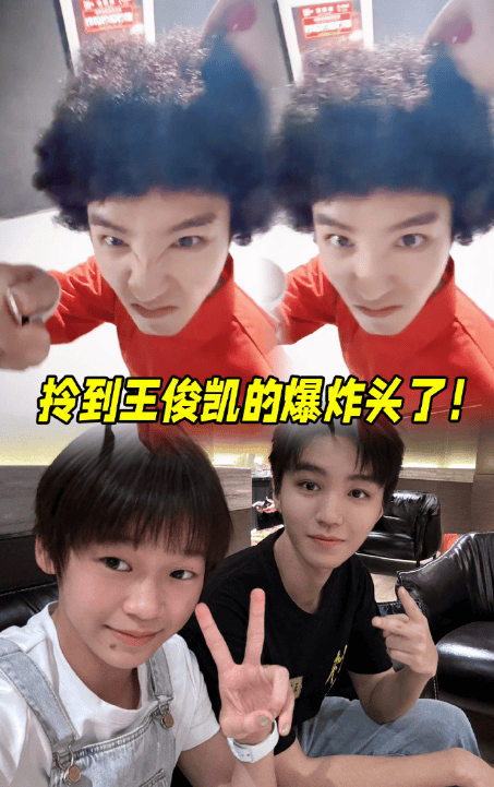王俊凯工作室偷偷放出的幕后花絮,地点在话剧《趁世界还年青》的后台化妆间。当天王俊凯为了贴合角色,特意做了夸张的爆炸头造型,刚卸完一半妆就被来探班的全红婵 “抓包”。全妹盯着他的头发好奇半天,伸手戳了戳卷毛,见王俊凯没反应,干脆直接上手揪,嘴里还念叨:“这头发能立住吗?像个小刺猬”。