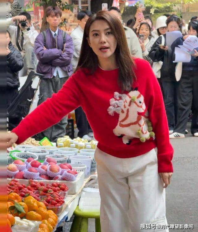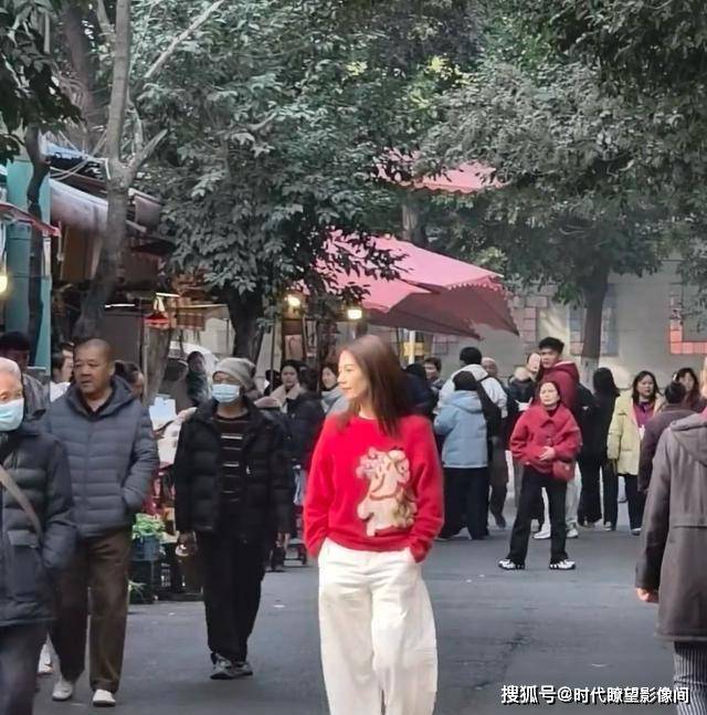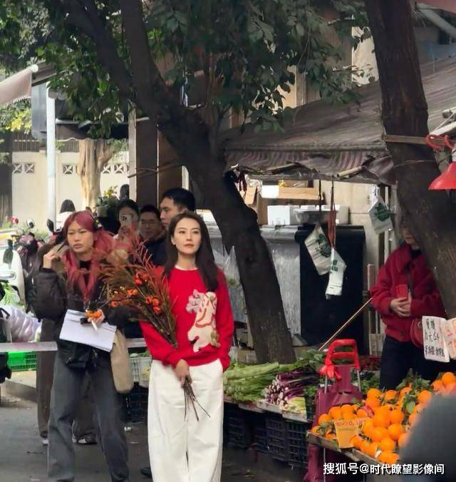 其实高圆圆的美,从来都不是“咄咄逼人的精致”,而是这种融入生活的松弛感。她会蹲在菜摊前和老板讨价还价,指着新鲜的草莓问“甜不甜”;也会顺手买一束路边的鲜花,举着花束站在老街道前拍照,红毛衣衬得她肤色透亮,和身后的青砖灰瓦形成绝美反差,路过的大爷大妈都举着手机追拍,直言“比电视剧里还耐看”。