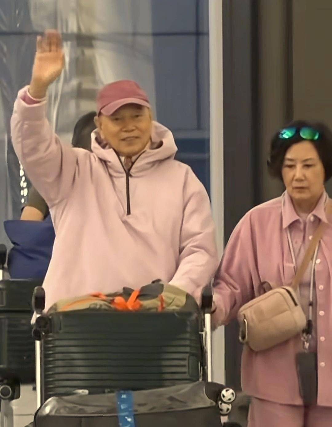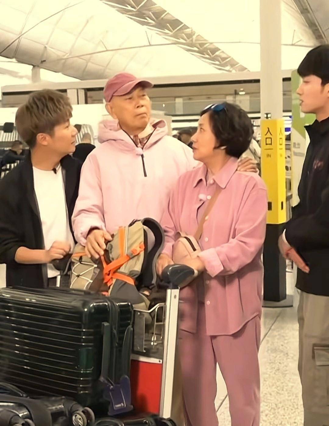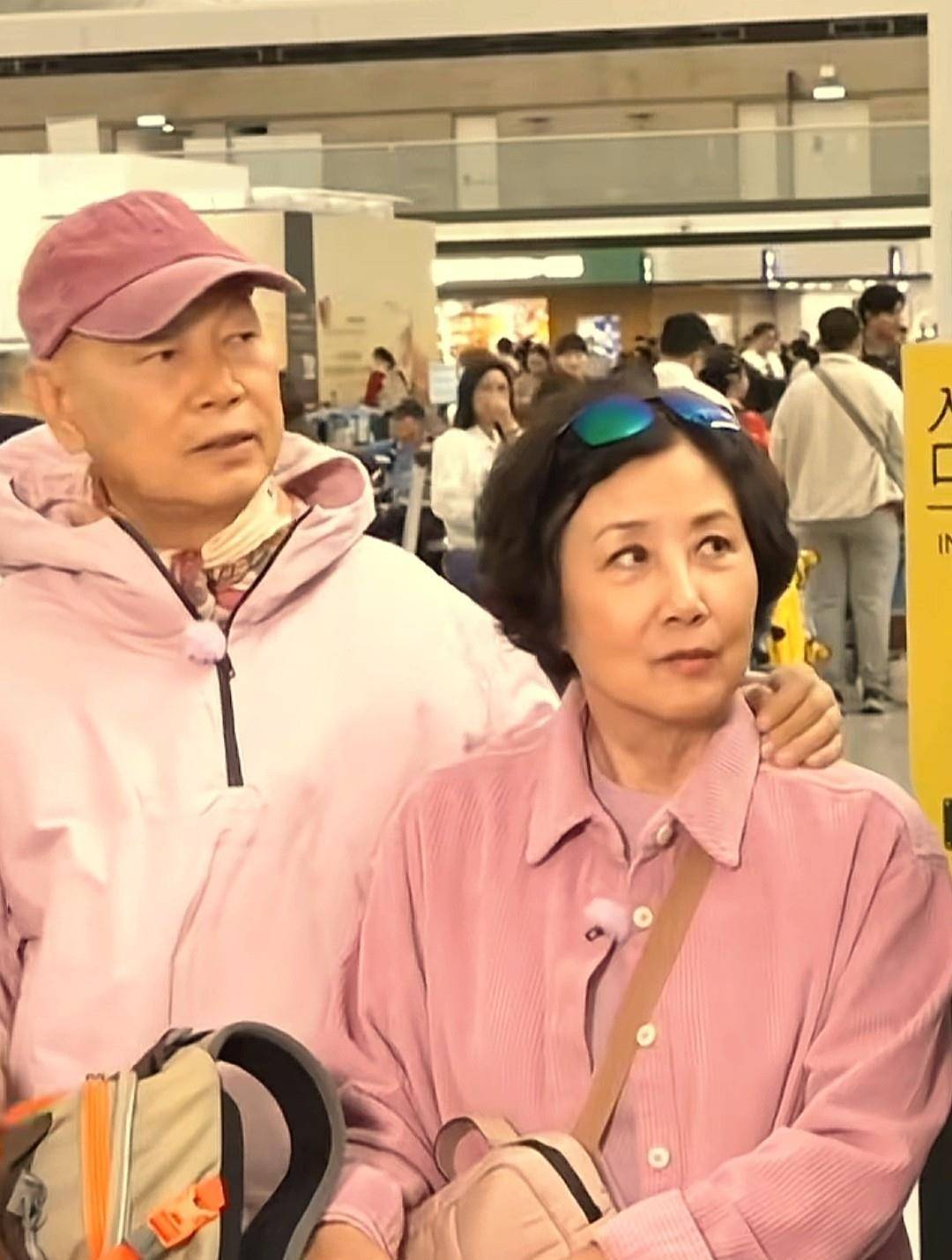近日,有网友在机场偶遇了正准备出门旅游的罗家英和汪明荃,年近80岁的老两口,穿着一套粉色系情侣装,在机场很是惹眼。