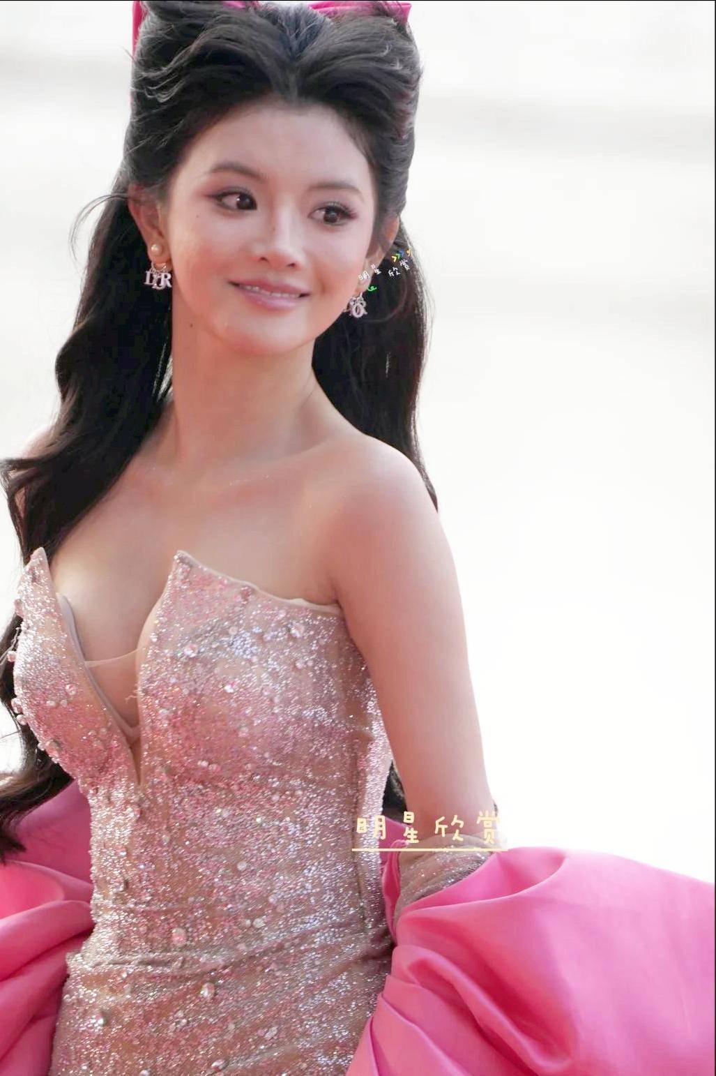 看那凭借《好一个乖乖女》崭露头角的甜妹余茵,一袭紫裙,脚踏“恨天高”,本是公主驾到,镜头却成了“照妖镜”。裙摆紧贴,暴露了身材比例的尴尬;侧颜一转,法令纹与黑眼圈无处遁形。身后护驾的队伍阵仗十足,可观众却调侃:这哪里是偶像出场,分明是“婶子回乡,气场全开”。