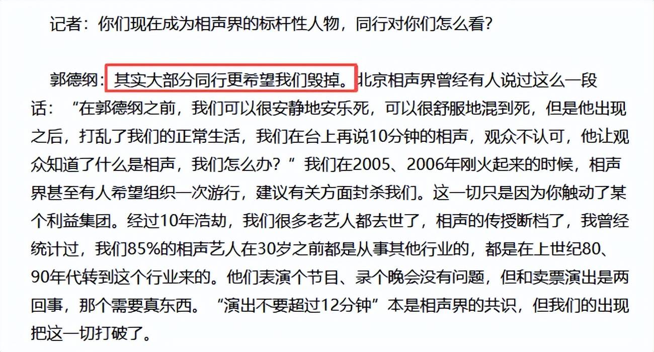 因为那时候德云社如日中天,挤压了同行的生存空间。