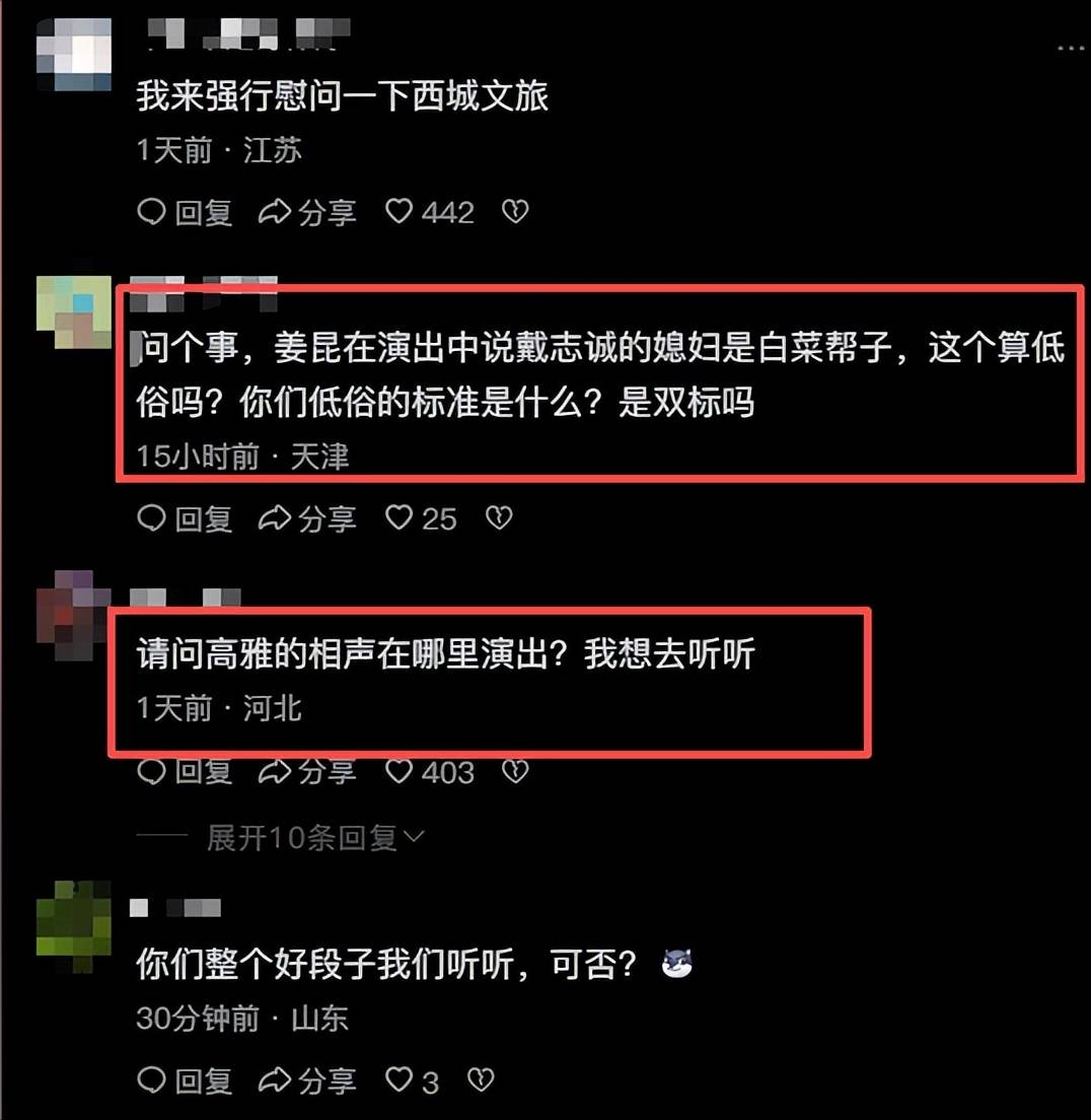 有人阴阳“高雅的相声在哪里演出?我想去听听”。