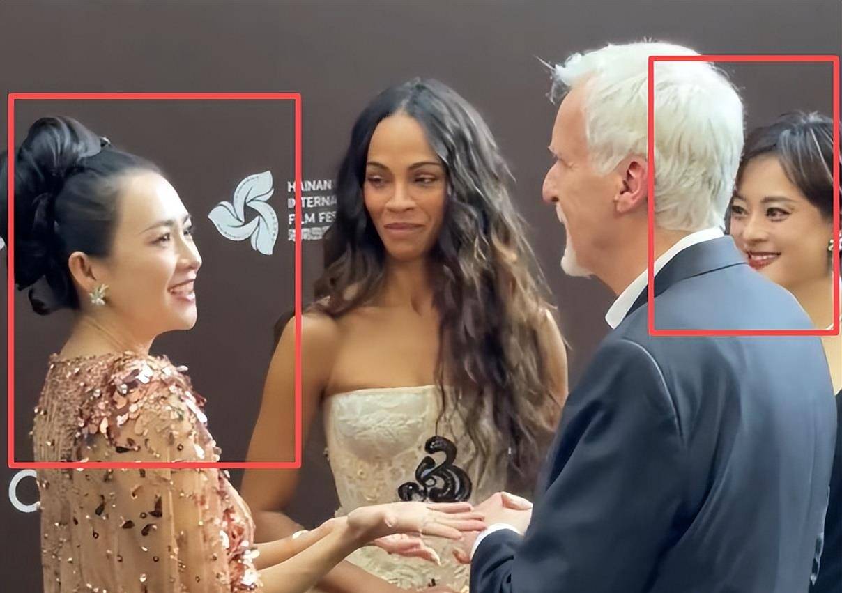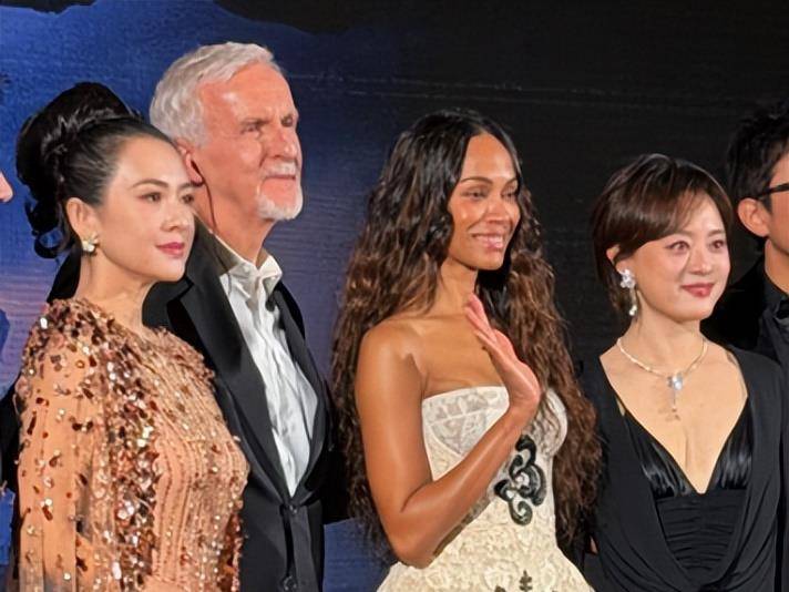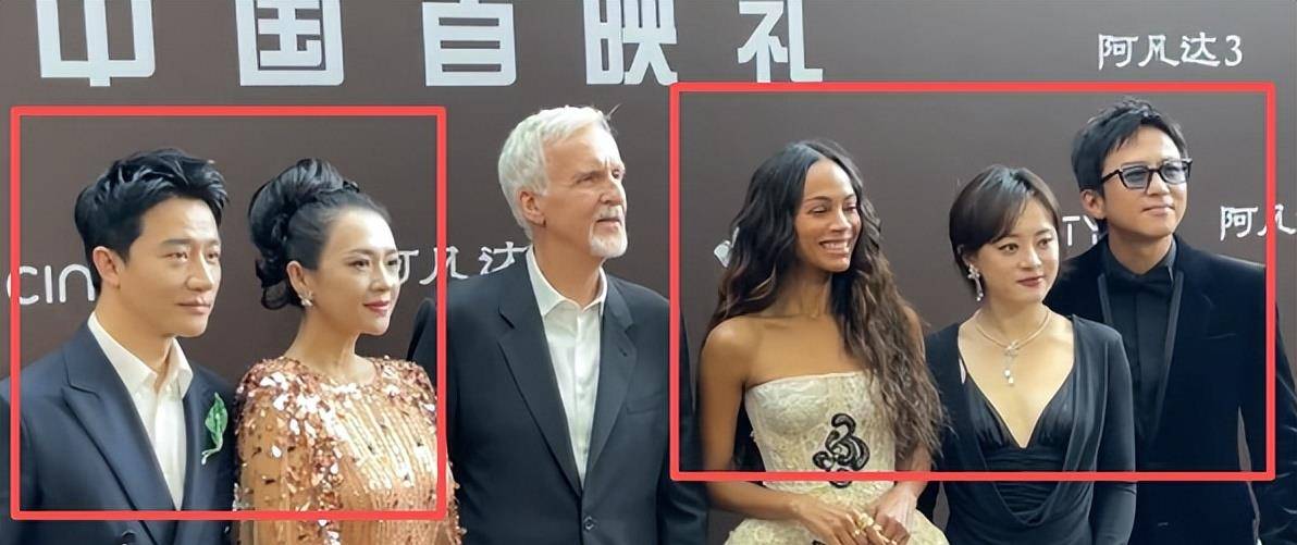 然而,合影时刻微妙顿生。导演卡梅隆与女主佐伊稳居中心,章子怡随即上前,以流利英语与之热络畅谈,三人谈笑风生,仿佛自成宇宙。咫尺之外,孙俪与邓超并肩而立,她双手轻握,面带微笑望向那热闹的中心,却仿佛被一层无形的玻璃墙隔开,难以融入。