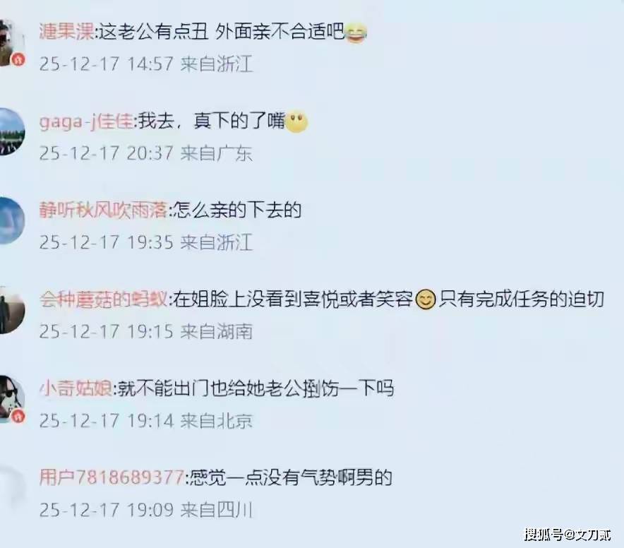 本来是撒糖名场面,结果评论区直接翻了车,满屏都是扎心吐槽:“我的天,张萌这审美是掉线了吗?”“这男的看着比张萌大好多,颜值真的配不上啊!”“以为是司机或者助理,结果是正牌老公?有点难以置信”“好好的环球小姐,怎么嫁了个‘其貌不扬’的普通人?”
