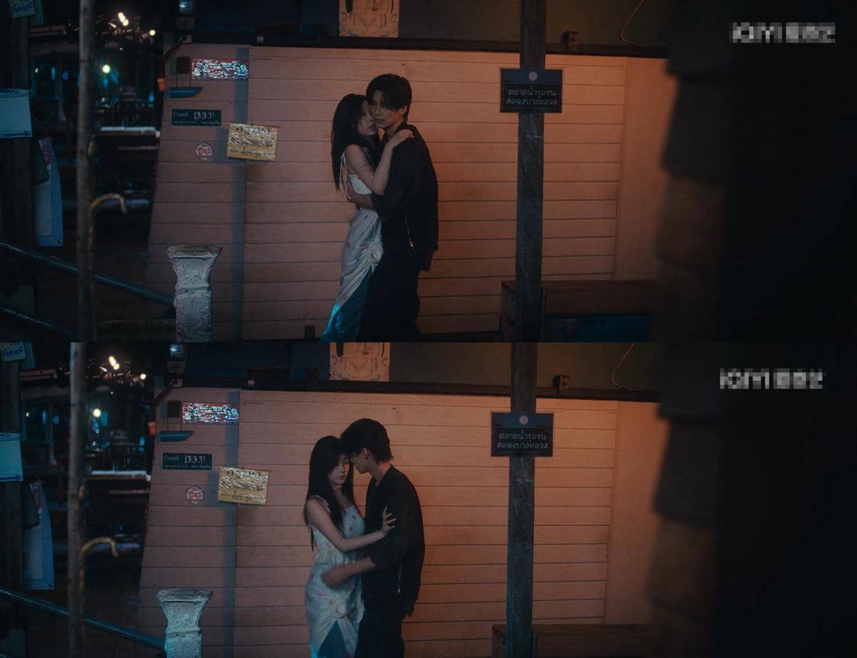 第一集播到二十多分钟时,两人的暧昧情绪直接上头,女主险些被摩托车撞到,男主一把将其揽入怀里,两人的距离都该“亲”上了,肢体接触了许久都不松手。