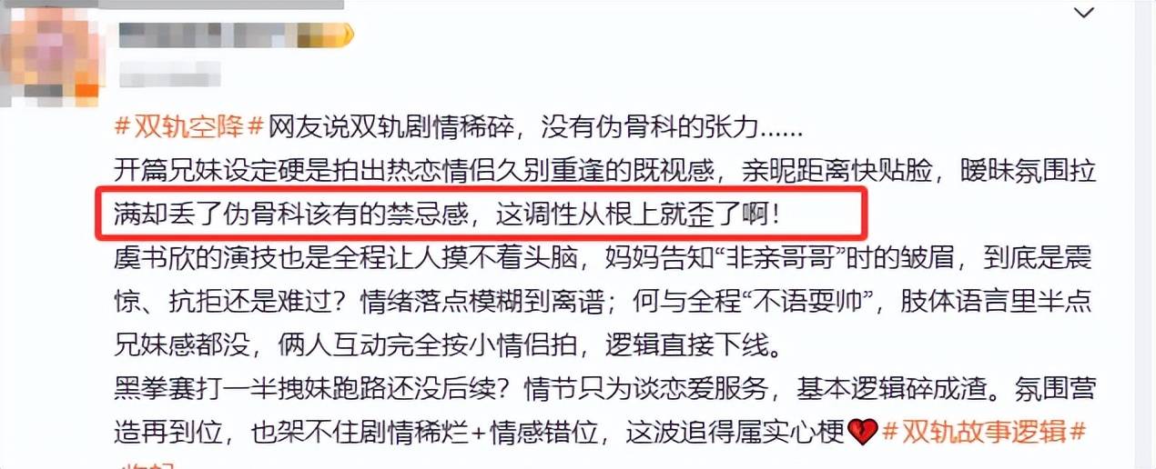 网友们也是对剧情的逻辑混乱表示了不满,坦言丢失了伪骨科的禁忌感,从调性上就错了。