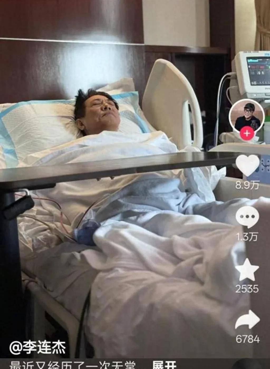 8月17日,李连杰在社交平台上发文:最近又经历了一次无常...。配图是,李连杰躺在病床上的照片,看上去很虚弱。