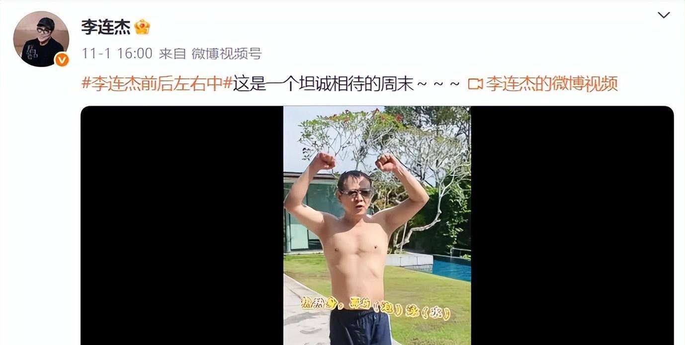 11月份李连杰在个人微博发布了一则视频,光着上身游泳的画面。