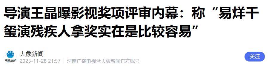 娱乐圈从不缺风波,但这一次,浪头直接拍向了新晋影帝。一位退休导演的几句闲谈,如同投入深潭的石子,激起的涟漪却足以撼动一位顶级流量的王座。就在易烊千玺捧回金鸡奖杯、迎来二十五岁生日的当口,王晶导演的爆料不期而至。他将自家旧事与行业“规矩”娓娓道来,一句“演特殊角色拿奖更容易”,精准地刺中了易烊千玺凭借脑瘫患者角色获奖的软肋。庆生活动戛然而止,争议却甚嚣尘上,这场关于实力与捷径的拷问,将这位置身顶峰的年轻人,推向了前所未有的舆论悬崖边。