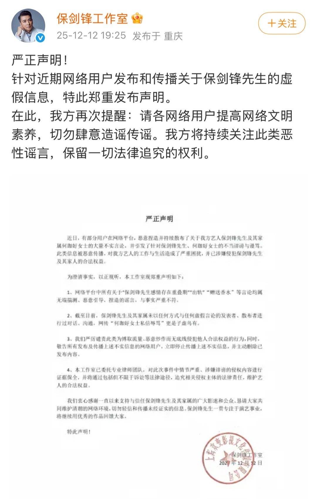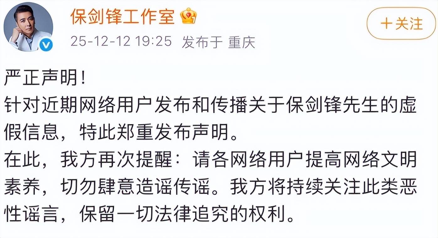 幕布拉开,戏台之上的娱乐圈,正上演着一出出情节离奇的大戏。聚光灯首先打向了演员保剑锋,一位承载着许多人青春记忆的荧幕面孔。一场来自旧日恋人的直播控诉,将他卷入“感情重叠期”的争议风暴中心。面对指控,他的反应耐人寻味——短短三小时内,一条回应微博被反复修改七次,像极了剧中人斟酌台词的纠结。最终,这出“回应戏”以工作室发出严正声明、威胁法律追责而暂告一幕。然而,台词可以修改,幕布可以落下,看客心中的疑问却未必随之消散。真相,似乎仍躲在重重帷幕之后。