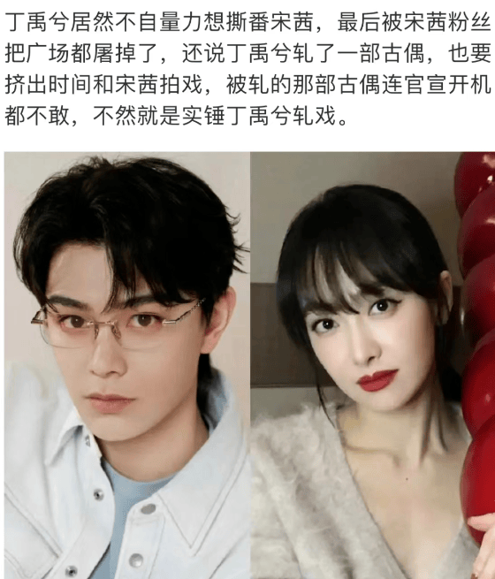 远的不说说近的,宋茜和丁禹兮合作的《山河枕》宣传期,俩人粉丝就为到底谁一番吵个不停。