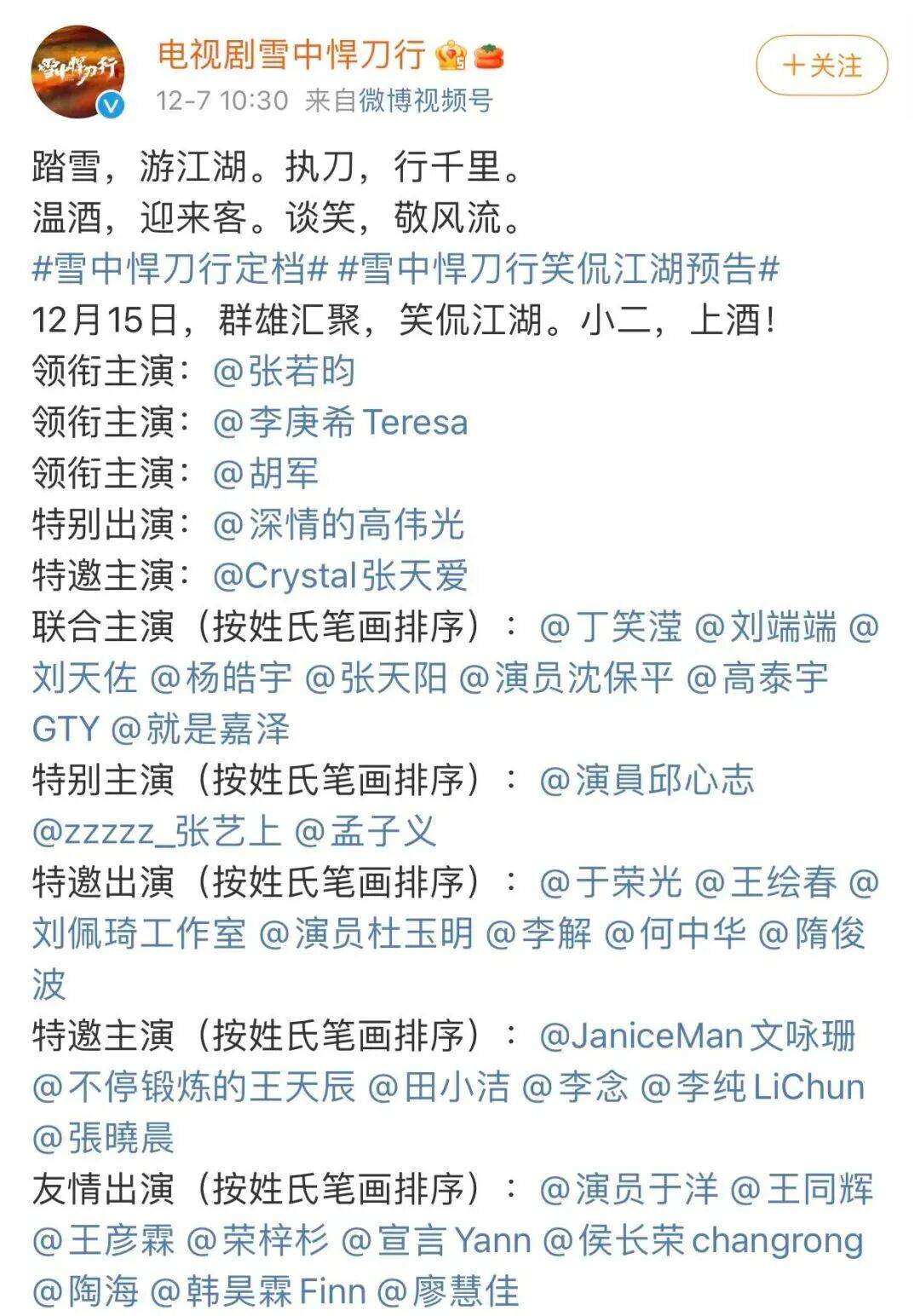 而且再往前推推,《雪中悍刀行》和《欢颜》官宣演员的时候也一样: