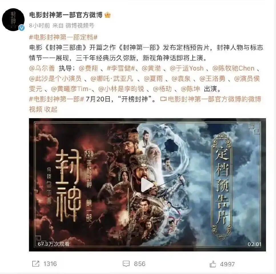 《封神1》因为压的时间长了,大咖们都拿不准电影质量,于是纷纷不当一番。