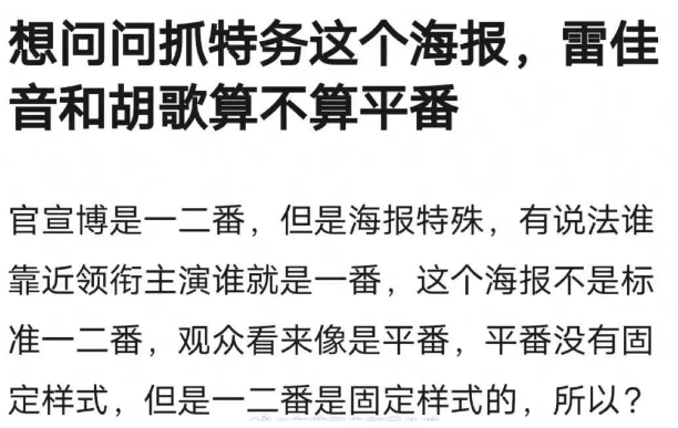 可是纵使演员在剧中在电影里番位再高,高到了一番的位置,后面不抗剧不抗票房也没用啊!