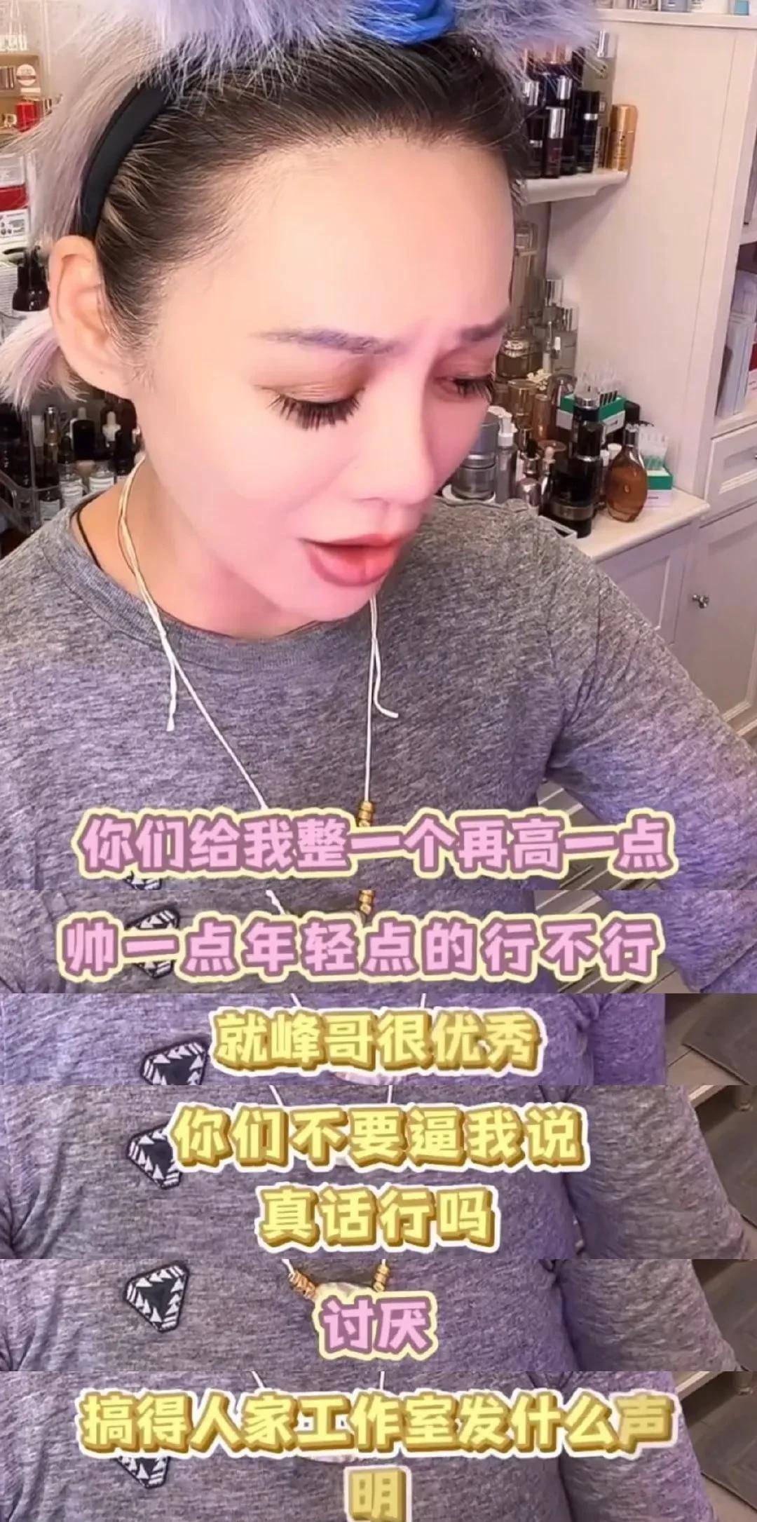 宁静火力全开,直言自己好歹也是名人,汪峰根本不是她的菜。她形容如今“男人转角就能碰到”,而自己“长得那么漂亮”,哪里需要将就?满脸都写着对乱点鸳鸯谱的抗拒,求网友“再怎么着也整一个高一点的、帅一点的、年轻一点的行不行”。她一顿犀利输出,最后还不忘补上关键一刀:“况且自己也不会去找一个‘有妇之夫’。”这满满的嫌弃,简直让人笑到打鸣!